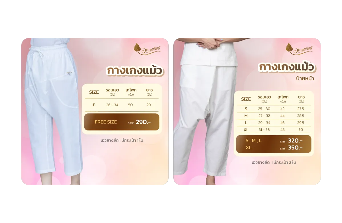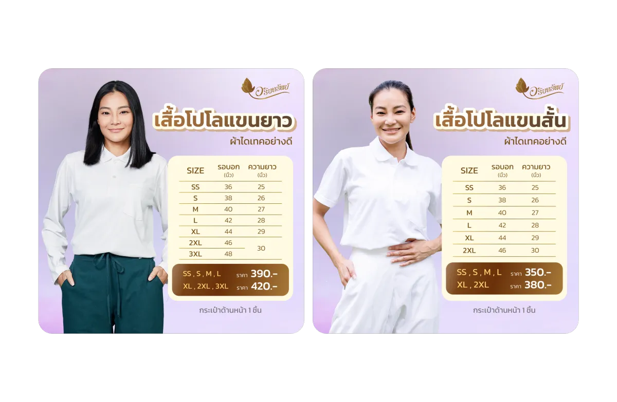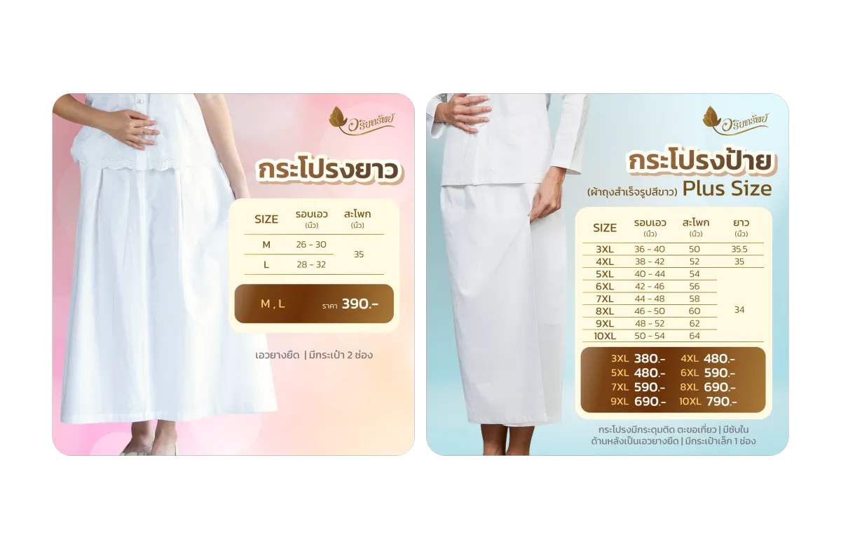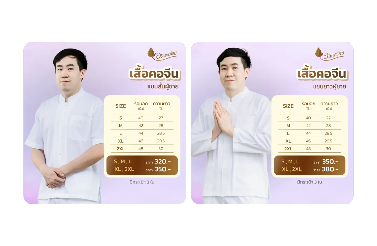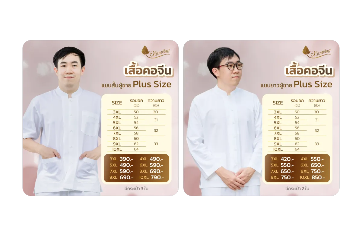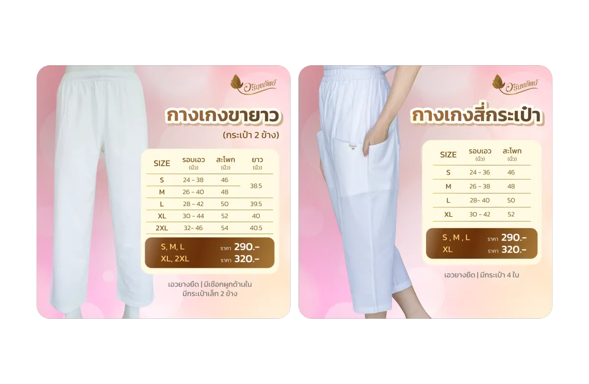 ปัจจุบันเราจำหน่ายออนไลน์เป็นหลัก ยังไม่มีหน้าร้านทดลองชุด แต่เรามีภาพสินค้าและขนาดชัดเจน