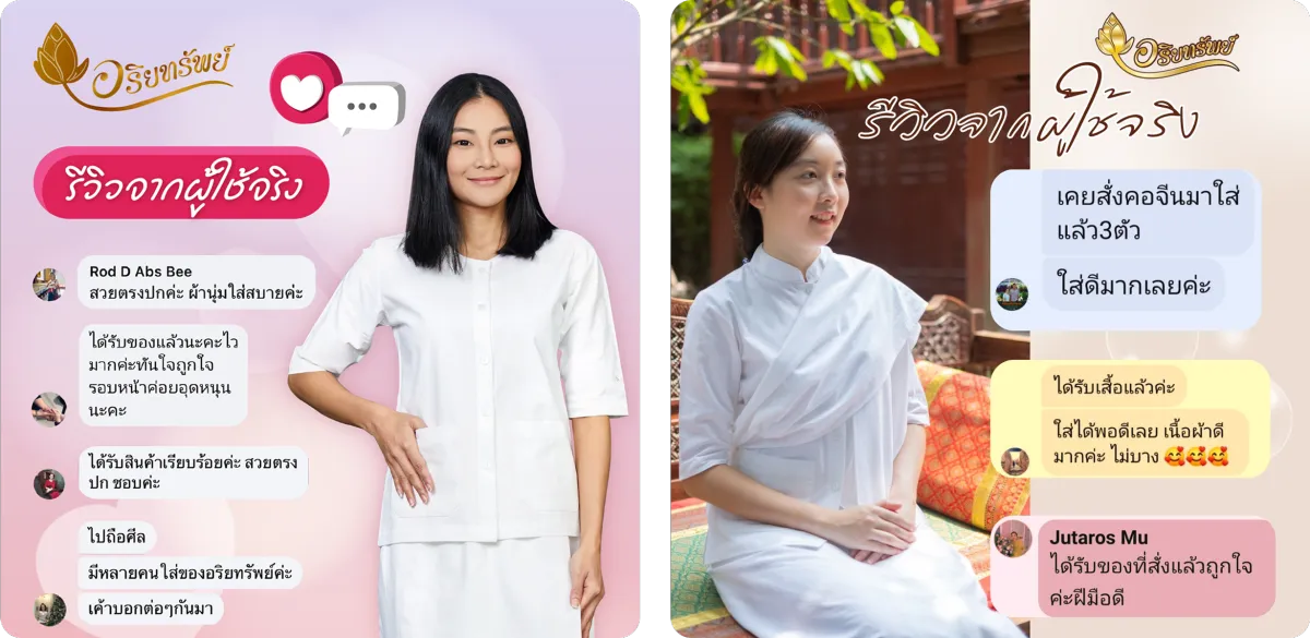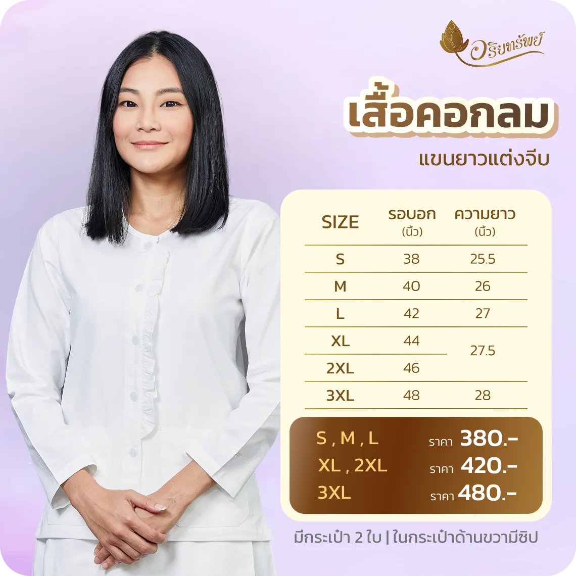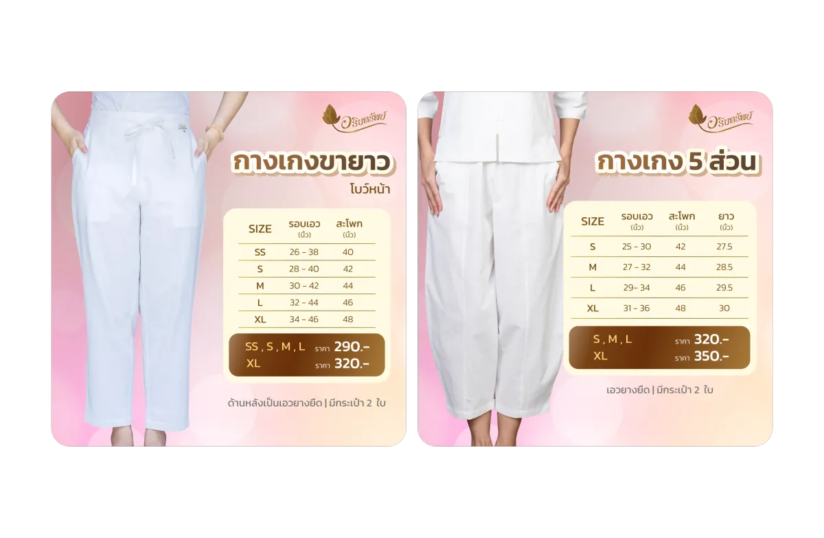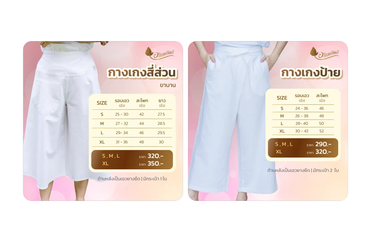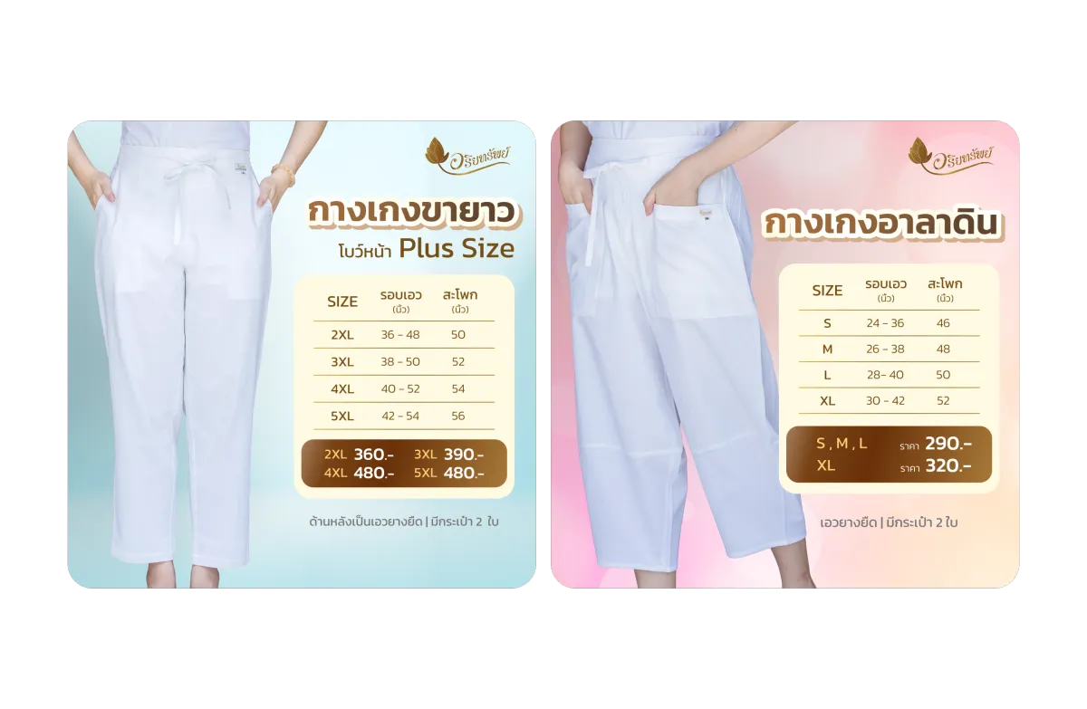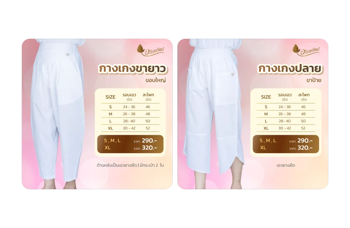 ปัจจุบันเราจำหน่ายออนไลน์เป็นหลัก ยังไม่มีหน้าร้านทดลองชุด แต่เรามีภาพสินค้าและขนาดชัดเจน